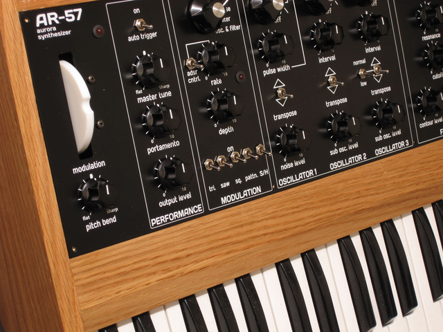 The AR-57, is a 3 vco analogue synthesizer. Hand made in Bedford, UK by Synth Restore. Choices of cabinet wood may be limited to current stock, so please email service@synthrestore.com for details.