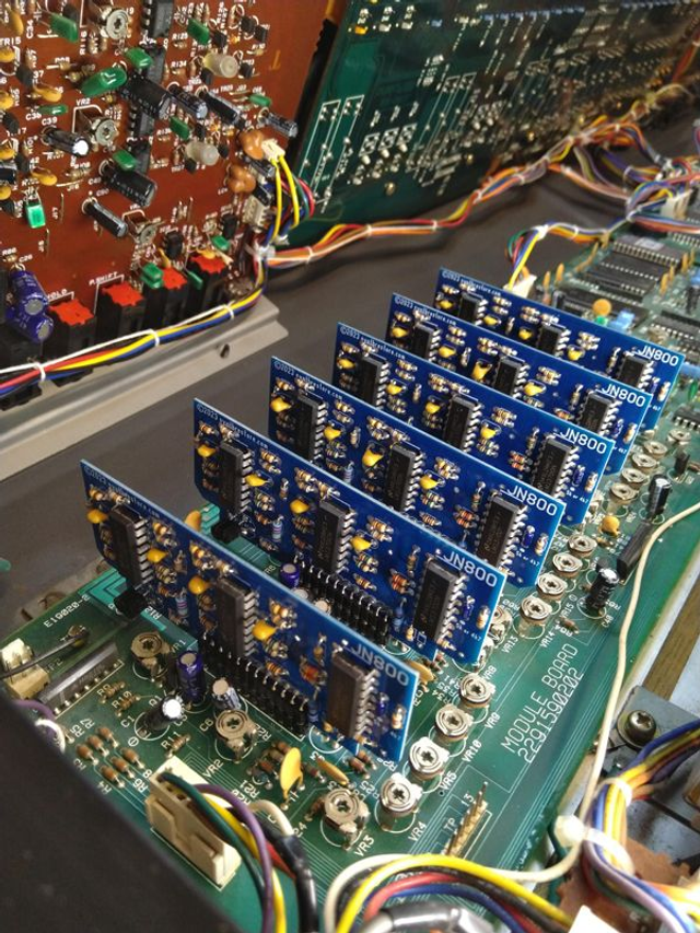 A complete set of assembled JN800 chips, for the Juno 106 synthesizer.